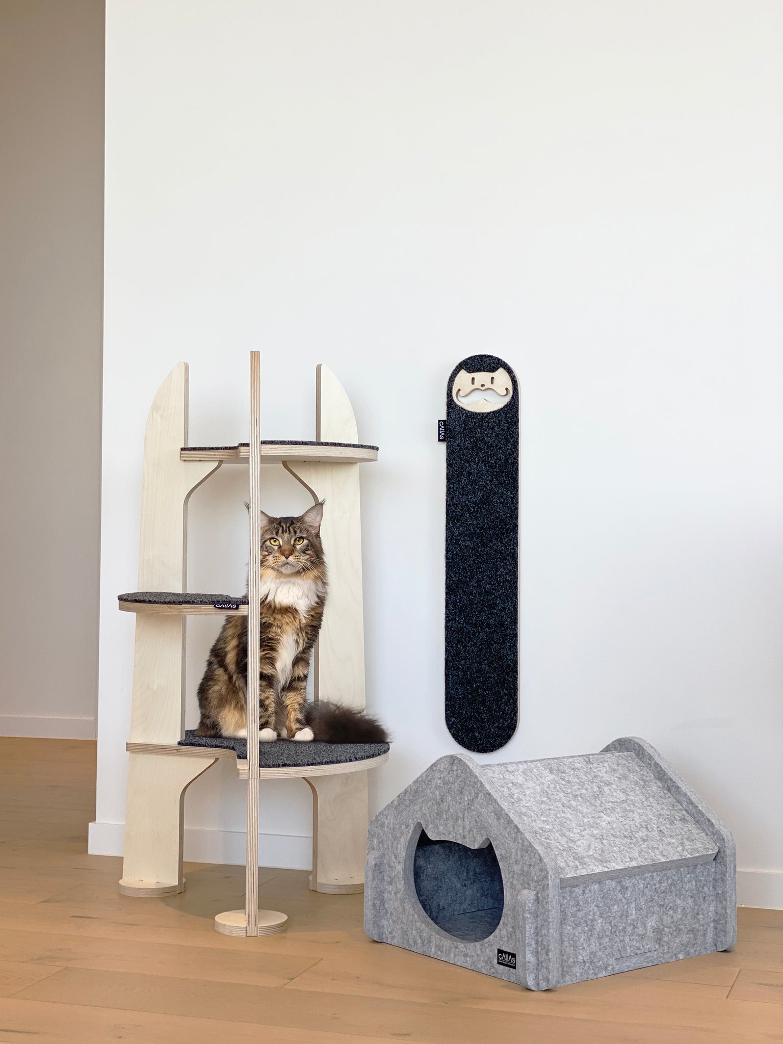 The furniture has been designed to be extremely sturdy and safe for cats to use. We have tested our products several times taking in consideration different scenarios. It is important to note that Catlas Design products are for cat use only and not suitable for toddlers, small children or larger pets to use and climb on.